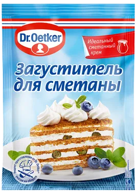 Загуститель для сметаны Dr.Oetker предназначен для получения крема идеальной консистенции. В составе загустителя содержится небольшое количество сахарной пудры, поэтому он обладает сладковатым вкусом. Не имеет запаха. С применением одной упаковки Dr.Oetker, всего за пару минут можно сделать из 0,5л сметаны воздушный и плотный мусс. Рекомендуется использовать для кисломолочных продуктов различной жирности.